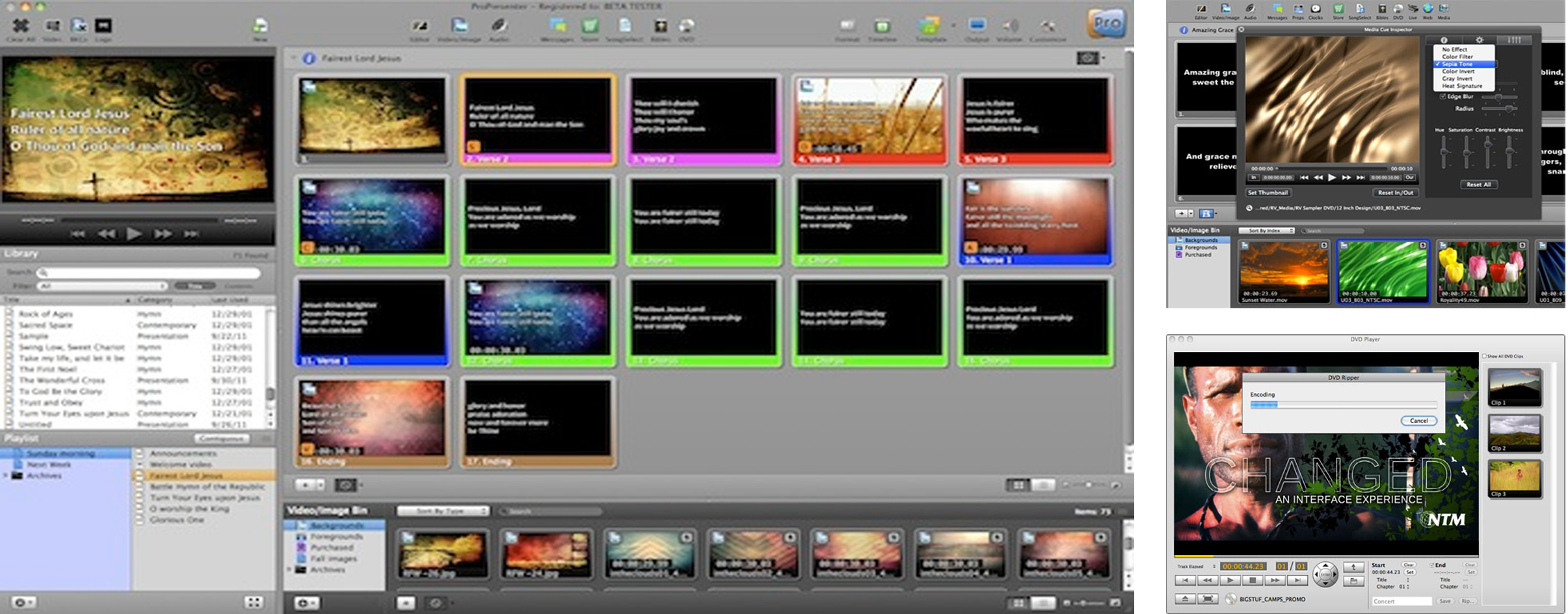 The Display Software is a Windows based media presentation package built specifically to make high-quality live productions easy — such productions include worship gatherings, sporting events, conferences, or even broadcast television. Taking full advantage of the latest technologies of your computer, the Display Software operators control a presentation on one screen, while dynamically affecting the visuals and sounds experienced by an audience on one or more screens. Used by ministries and organizations all over the world for more than a decade, we have taken our valued users’ feedback and create version 5 of the Display Software.
