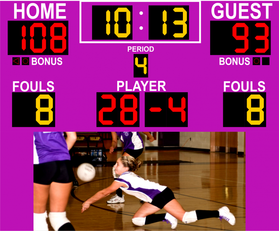 Serve up the score with DCI’s Cinevision & Volleyball display! Combining all the ability and versatility of our Message centers with a full scoreboard you can slam the competition! Have a special player announcement? Why not really personalize it with a photo and player stats? Keep your audience informed of school events and even offer Special/Birthday announcements.